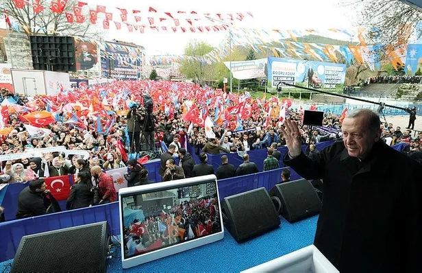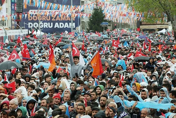 Seçime 26 gün kaldığını anımsatan Erdoğan'ın "Ana kademe, kadın kolları, gençler, gece gündüz çalışmaya var mıyız? Kapıları çalıyoruz değil mi? İnşallah ben diyorum ki her bir AK Partili 100 kişiyi daha sandığa taşımalı. Var mıyız?" sorusuna, alandaki vatandaşlar "Evet" karşılığını verdi.