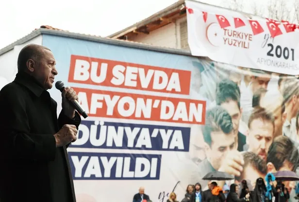 Cumhuriyet'e giden yolun Afyonkarahisar'da kazanılan zaferle başladığını belirten Erdoğan, "Biz de 14 Ağustos 2001 tarihinde partimizi kurarken Afyon'dan yola çıkmıştık. Şimdi de Cumhuriyetimizin 100. yılında Türkiye Yüzyılı'na giden yolu yine Afyonkarahisar'dan başlatıyoruz." diye konuştu.