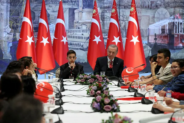 Başkan Erdoğan ise Hatay Kırıkhan'dan gelerek İstanbul'da öğrencilik hayatına devam eden 5'nci sınıf öğrencisi 11 yaşındaki Akif Uçar'a başkanlık görevini bıraktı. Erdoğan, diğer öğrencilerden de bakan olduklarında neler yapabileceklerini ve önerilerini dinledi.