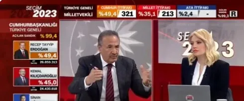 14 Mayıs seçimlerinden gelen resmi olmayan sonuçlara göre Başkan Recep Tayyip Erdoğan 7'li koalisyonun cumhurbaşkanı adayı Kemal Kılıçdaroğlu'na yaklaşık 5 puan fark attı.