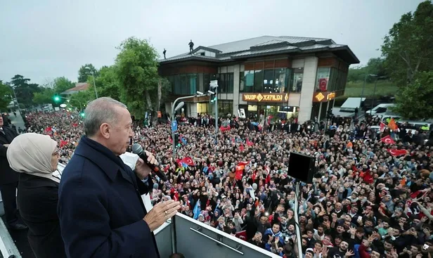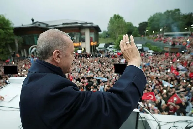 Başlan Recep Tayyip Erdoğan'a destek vermek ve sevgi gösterisinde bulunmak isteyen vatandaşlar, Erdoğan'ın Üsküdar Kısıklı Mahallesi'ndeki konutunun önünde bir araya geldi. Başkan Erdoğan önemli açıklamalarda bulundu. Seçimi 85 milyonun kazandığını belirten Erdoğan, "Kadınlarımızı tebrik ediyorum, gençlerimizi tebrik ediyorum ve AK Parti davasına gönül veren tüm kardeşlerimi tebrik ediyorum. Yurt içinde, yurt dışında, ikinci tura göre özellikle yüksek oy oranlarıyla sandığa koşan herkese teşekkür ediyorum." dedi. CHP Genel Başkanı Kemal Kılıçdaroğlu'nun seçimi kaybettiği için parti içinde zor bir durumda kalacağını açıklayan Erdoğan, "Bay Bay Kemal'e bir Bay daha ekleyebiliriz, Bay Bay Bay Kemal." ifadelerini kullandı.