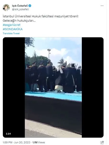 Videoyu kullanan CHP 27.Dönem Samsun Mv. Adayı Işık Özkefeli ise "İstanbul Üniversitesi Hukuk fakültesi mezuniyet töreni! Geleceğin hukukçuları…" yazarak skandal bir paylaşıma imza attı.