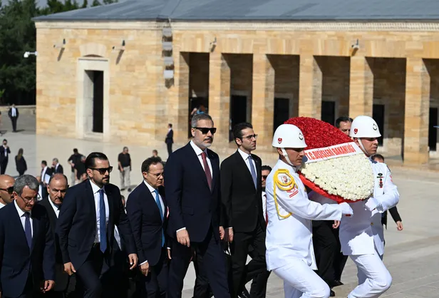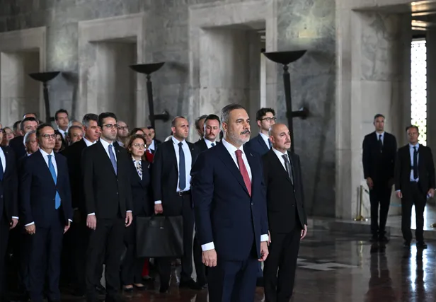 Bakan Fidan ve büyükelçiler, Atatürk'ün mozolesine çelenk bıraktıktan sonra saygı duruşunda bulundu.