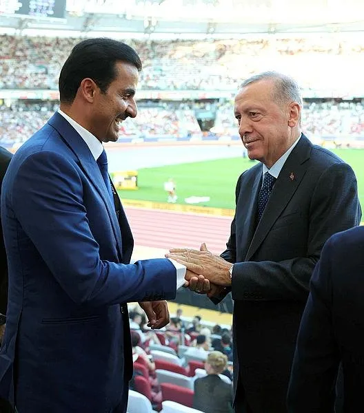 Budapeşte Dünya Atletizm Şampiyonası 2023 Erkekler 100 metre yarışı finalini izleyen Başkan Erdoğan, stadyumda Azerbaycan Cumhurbaşkanı İlham Aliyev ve Katar Emiri Şeyh Temim bin Hamed Al Sani ile sohbet etti.