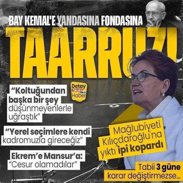 Ancak aynı Akşener, bugün İsmail Saymaz'a verdiği demeçte "Yerel seçimde ittifak yok, bazı yerlerde işbirliği olabilir" sözleriyle muğlak bir tutum sergiledi.