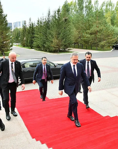 Dışişleri Bakanı olarak Türk Dünyası'nın ata yurdu Kazakistan'a ilk ziyaretini gerçekleştirmekten mutluluk duyduğunu dile getiren Fidan, "Kazakistan, Avrasya coğrafyasının istikrarı ve refahı için kilit önemdedir. Bunu görmek için Kazakistan'ın jeopolitik konumunu ve enerji kaynaklarını hatırlamak yeterli." ifadelerini kullandı.