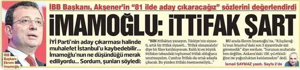 Hatırlanacağı üzere İmamoğlu, "Partiler üstü İstanbul ittifakı" söylemine sığınıp, 2019'a gönderme yaparak İYİ Parti ve HDPKK'ya göz kırpmıştı.