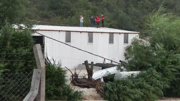 Çatıda mahsur kalan çalışanlardan, Emre Taşkın, "O sırada çalışıyorduk, çatıya merdivenle çıktım. Mahsuriyetlik bir durum yok, biz bekledik orada. Çatıda güvende bekledik. Allah'ın vermiş olduğu bir afet. İtfaiye geldi iple çekti bizleri. Dere taşmadı başka bir yerin suyu buraya geldi. Bir anda geldi zaten, yağmur gibi yavaş yavaş olmadı. İş yeri yarıya kadar suyla doldu" ifadelerini kullandı.