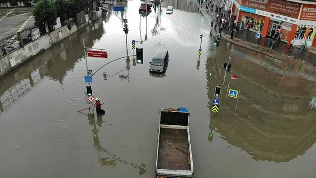 Küçükçekmece ve Başakşehir'de araçlar suya gömüldü!