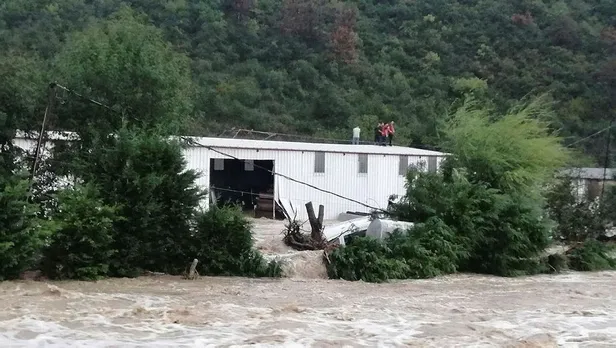 Dere yatağına bulunan mermer fabrikası sular altında kalırken, 7 işçi çatıya çıktı. Çatıda mahsur kalan 7 kişi, İtfaiye ekipleri tarafından halat yardımıyla kurtarıldı.