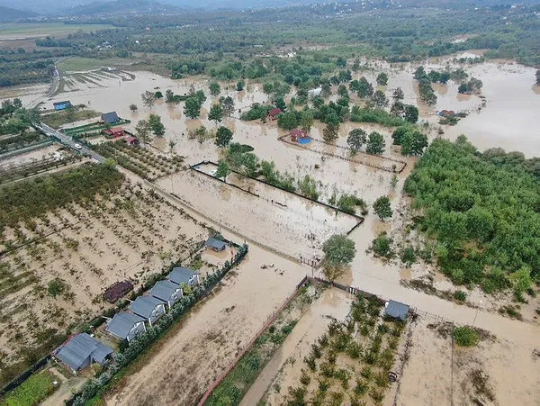 Tarım arazileri, evler ve bungalovlar sel sularının altında kaldı.
