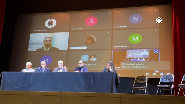 Ülkenin başkenti Paris'in banliyösü Stains kentinde, İsrail'in Gazze'deki saldırıları ve soykırım suçu işlediğine dair yüzlerce avukatın bir araya gelerek 9 Kasım'da UCM'ye sunduğu şikayet dilekçeleriyle ilgili bilgilendirme toplantısı düzenlendi.