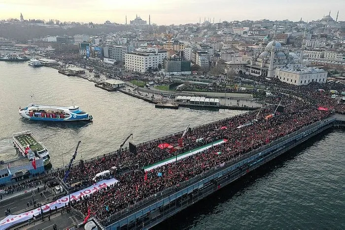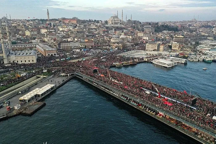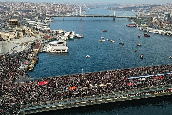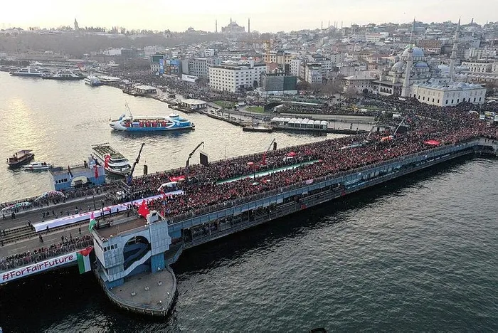 Kortejdeki vatandaşların da alana ulaşmasıyla yüz binlerce kişi Galata Köprüsü'nü, Eminönü Meydanı'nı ve köprünün Karaköy çıkışını doldurdu.