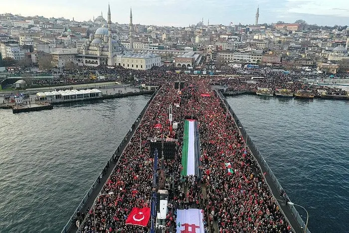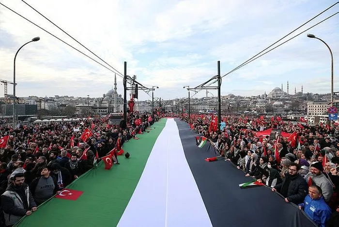 Türkiye Gençlik Vakfının (TÜGVA) öncülüğünde, Milli İrade Platformu tarafından 308 STK'nin katılımıyla Galata Köprüsü'nde düzenlenen "Şehitlerimize Rahmet, Filistin'e Destek, İsrail'e Lanet" etkinliği tamamlandı.