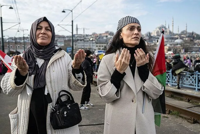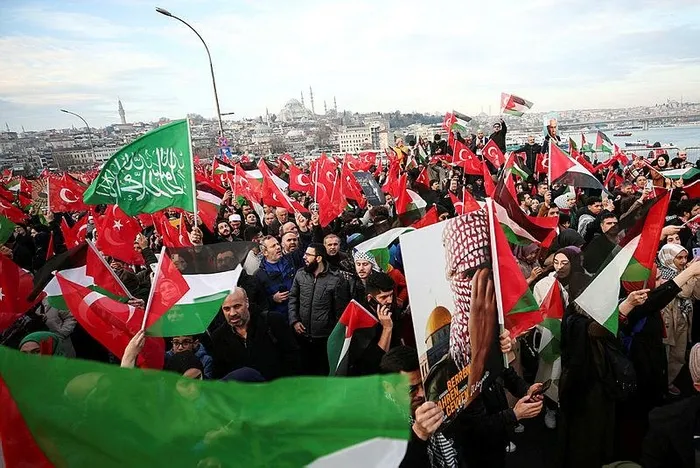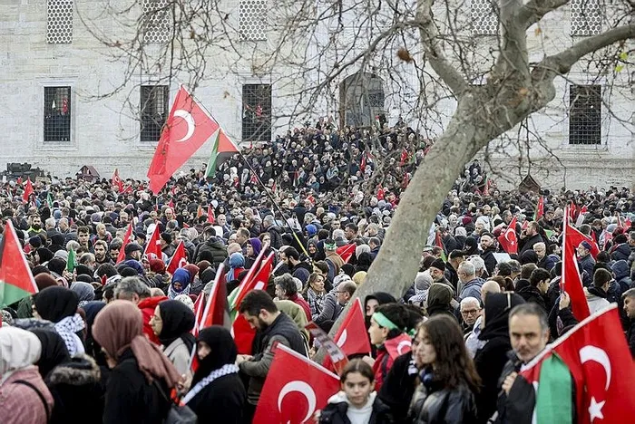 Katılımcılar daha sonra Türk ve Filistin bayrakları ile Ayasofya ve Sultanahmet meydanları ile Yeni Camii ve Süleymaniye Camisi'nin önünde toplandı.