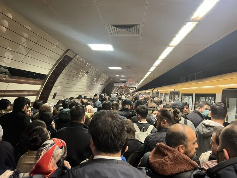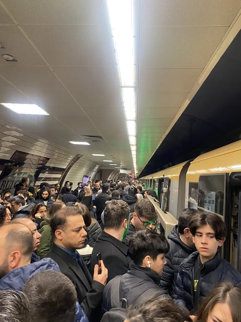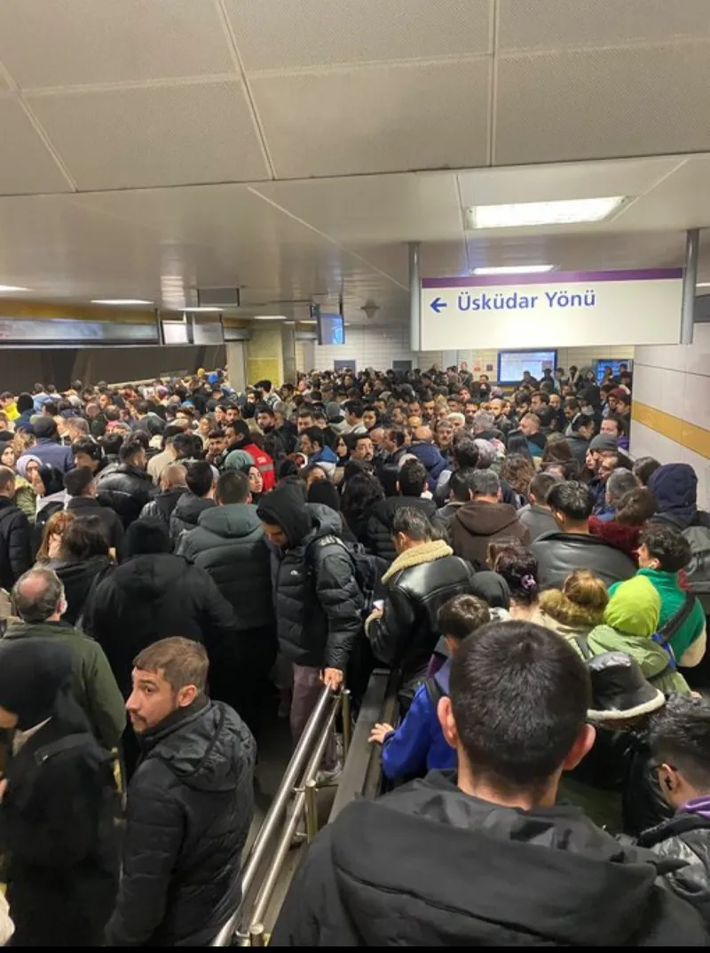 Seferlerin durdurulması nedeniyle metro hattındaki istasyonlarda yoğunluk oluştu.
