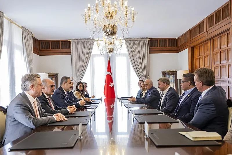 Dışişleri Bakanı Hakan Fidan, ABD Temsilciler Meclisi Silahlı Hizmetler Komisyonu Başkanı Mike Rogers, Kıdemli Üyesi Adam Smith ve beraberindeki üyeleri Ankara'da kabul etti.