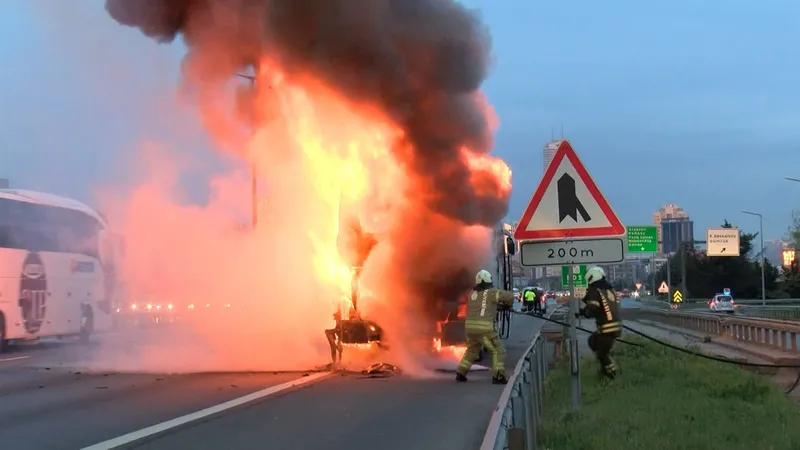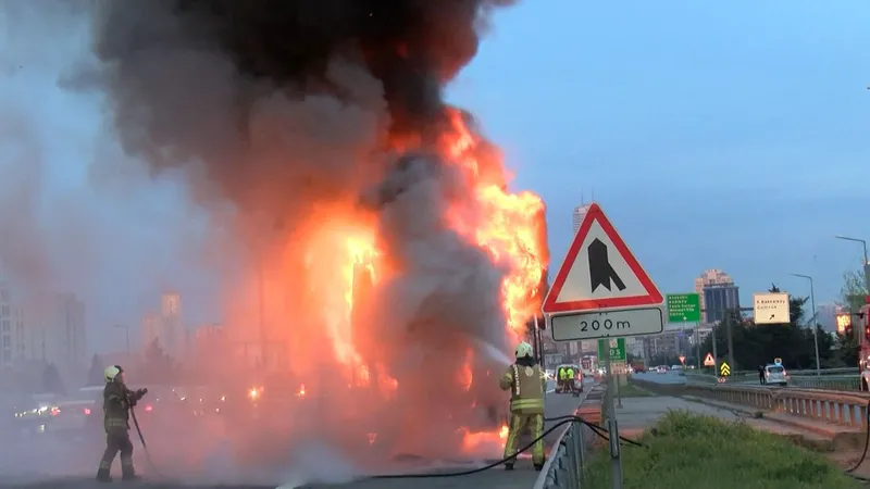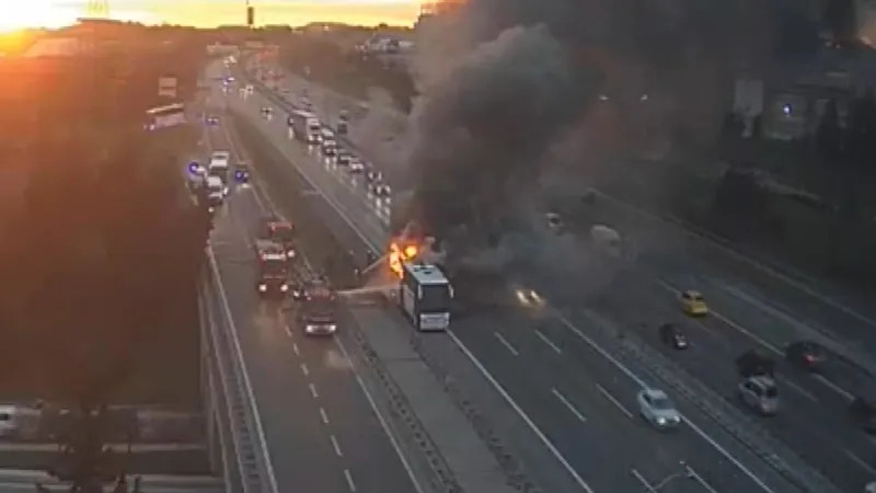 Son dakika: Ümraniye TEM otoyolunda seyir halindeki iki yolcu otobüsü alev alev yandı