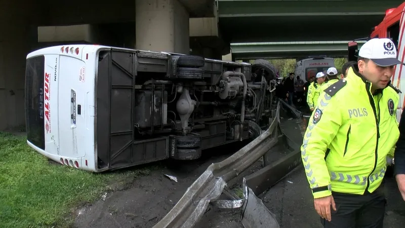 Son dakika: İstanbul'da feci kaza! Sivil polisleri taşıyan servis devrildi!