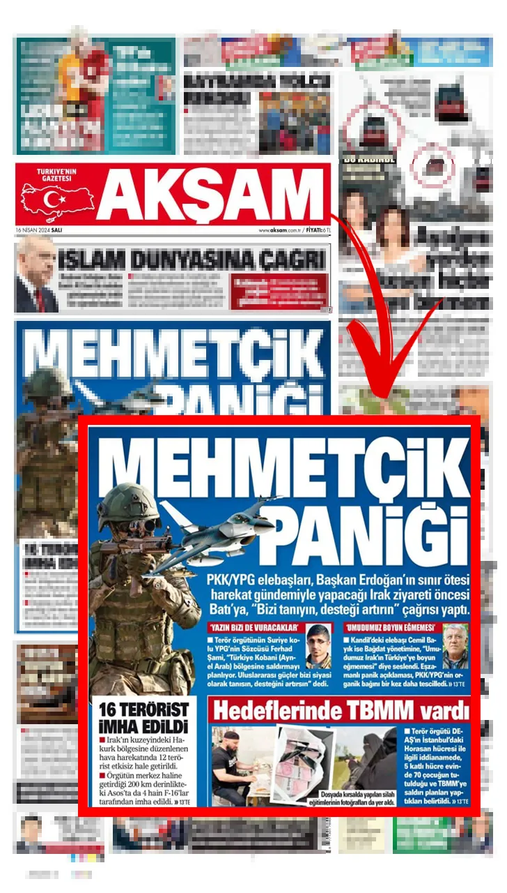 Akşam Gazetesi 16 Nisan 2024 tarihli manşetinde Takvim.com.tr'nin duyurduğu haberi "MEHMETÇİK PANİĞİ" başlığıyla okurlarına aktardı.