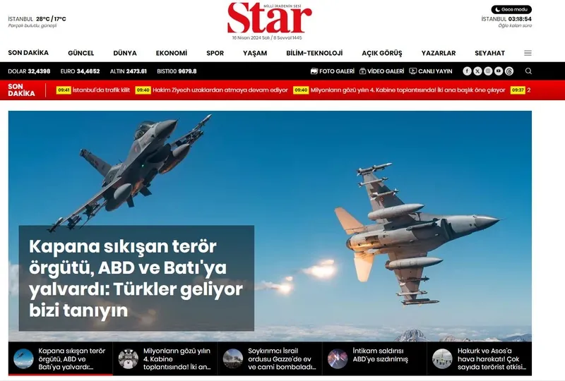 Star.com.tr "Kapana sıkışan terör örgütü ABD ve Batı'ya yalvardı: Türkler geliyor bizi tanıyın" başlığıyla gelişmeyi birinci manşetinden okurlarına aktardı.