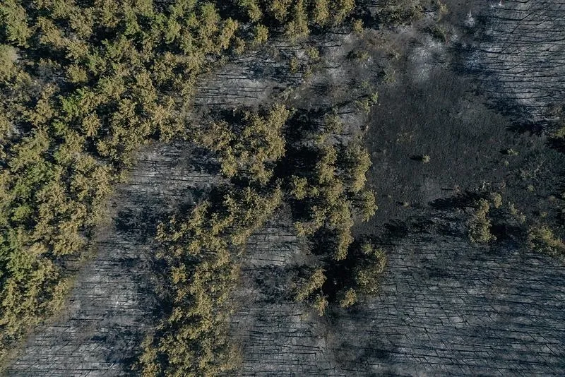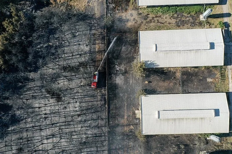 Öte yandan soğutma çalışması ve hasar tespitinin sürdüğü kampüste yanan ormanlık alan, dronla görüntülendi.