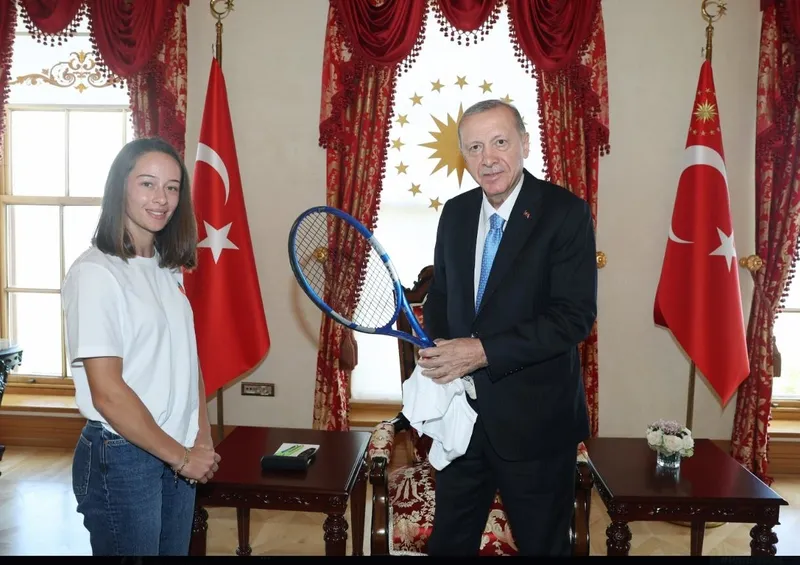 Başkan Erdoğan milli tenisçi Zeynep Sönmez'i Dolmabahçe Çalışma Ofisi'nde kabul etti