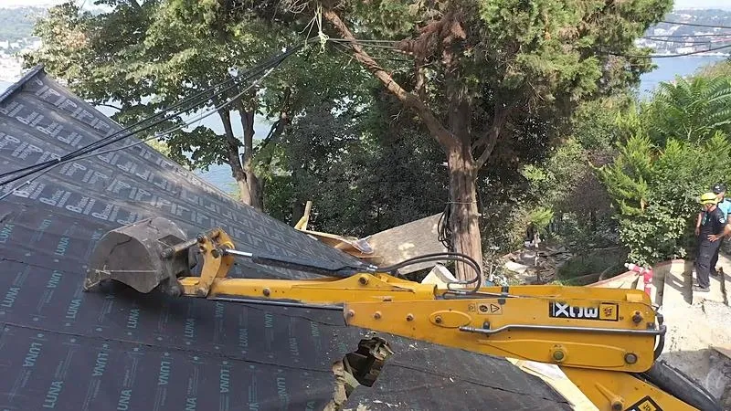Vaniköy'deki kaçak villanın yıkımında gerginlik! Bakanlık sabah başladı İBB şova geldi ağaçlara zarar verdi