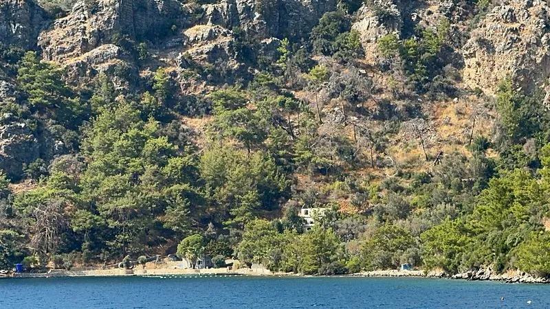 Marmaris'te tekneyle ulaşım olan bir koyda bulunan Şahan Gökbakar'a ait kaçak yapıda, Çevre, Şehircilik ve İklim Değişikliği Bakanlığı Muğla İl Müdürlüğü ve Marmaris Belediyesi ekiplerince inceleme yapıldı.