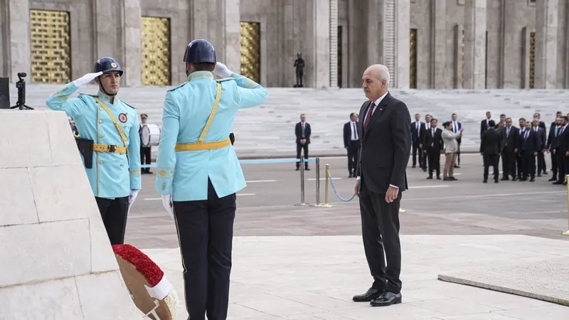TBMM Başkanı Numan Kurtulmuş'un anıta çelenk bırakmasının ardından bando eşliğinde saygı duruşunda bulunularak, İstiklal Marşı okundu.
