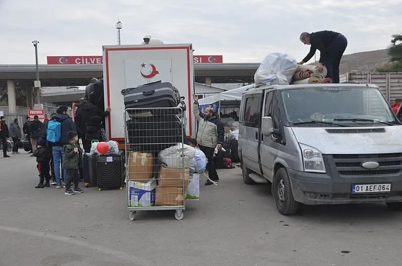 Hatay'ın Reyhanlı ilçesindeki Cilvegözü Gümrük Kapısı'na gelen Suriyeliler, Türkiye'ye teşekkür ederek ülkelerine dönüyor.