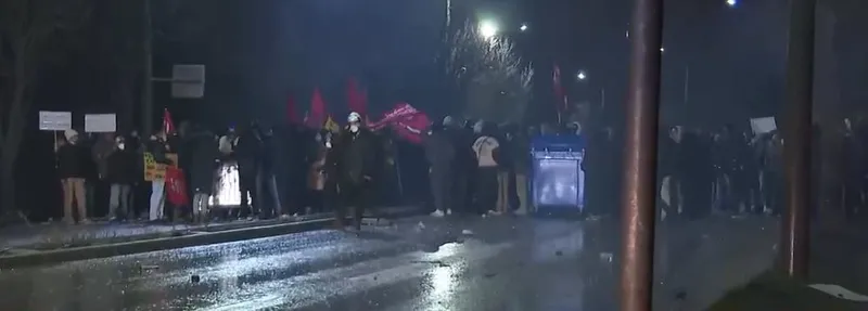 Buna rağmen ellerindeki sopalarla polise mukavemette bulunan, çöp konteynerlerini ateşe veren gruptakilere ekipler tarafından zaman zaman biber gazı ve tazyikli suyla müdahalede bulunuldu. Eylemcilerden bazılarının bu sırada kaldırım taşlarını söktüğü görüldü.
