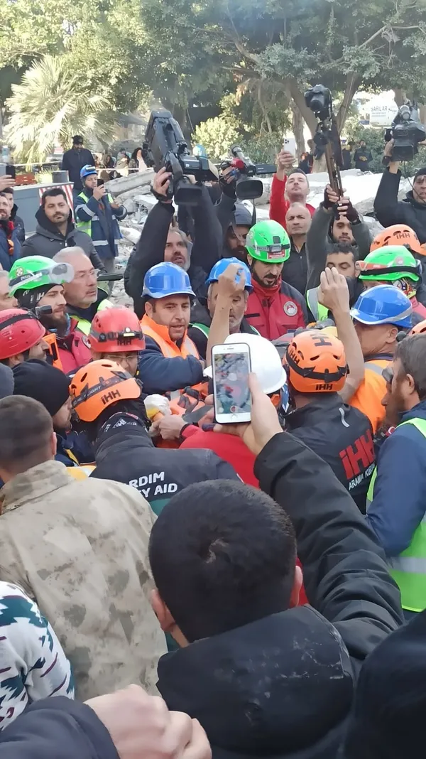"Asrın felaketi" olarak nitelenen Akdeniz, Güneydoğu ve Doğu Anadolu bölgelerindeki 10 ili etkileyen depremlerde yıkılan Hatay'ın İskenderun ilçesindeki 5 katlı apartmanın enkazından depremden 102 saat sonra 6 kişilik aile kurtarıldı.