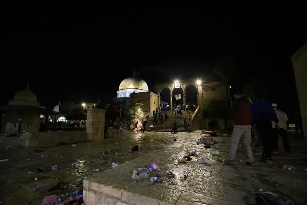 İşgal altındaki Doğu Kudüs'te fanatik Yahudi yerleşimciler, İsrail polisinin koruması altında Mescid-i Aksa'nın avlusuna girdi. İsrail güçleri, Aksa'ya giren yerleşimci grupların “güvenliği” için itikaf halindeki Müslümanları Harem-i Şerif’ten uzaklaştırdı. Filistin yönetimi, Mescid-i Aksa'ya düzenlenen baskının İsrail'in ramazan ayında ateşkes yapıldığı yönündeki iddialarını yalanladığını bildirdi.