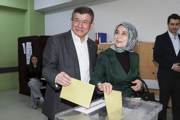 Eyüpsultan'da bulunan Nejat Sabuncu İlkokulu'ndaki 2249 numaralı sandıkta eşi Sare Davutoğlu ile oy verme işlemini gerçekleştiren Davutoğlu, seçimlerin hayırlı olması dileğinde bulundu.