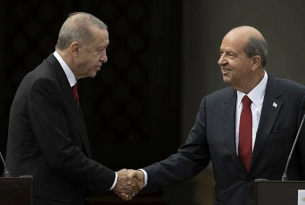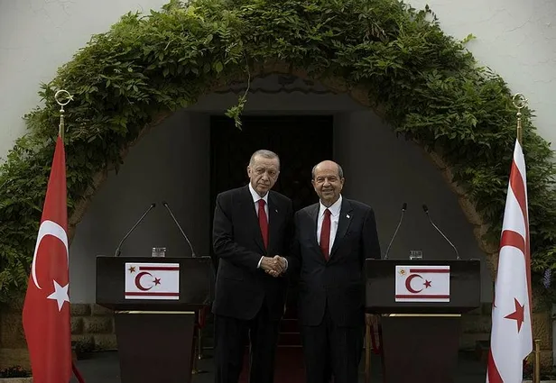 Başkan Erdoğan ve Kuzey Kıbrıs Türk Cumhuriyeti (KKTC) Cumhurbaşkanı Ersin Tatar, Cumhurbaşkanlığı Sarayı'nda, baş başa ve heyetler arası görüşmelerin ardından ortak basın toplantısı düzenledi.