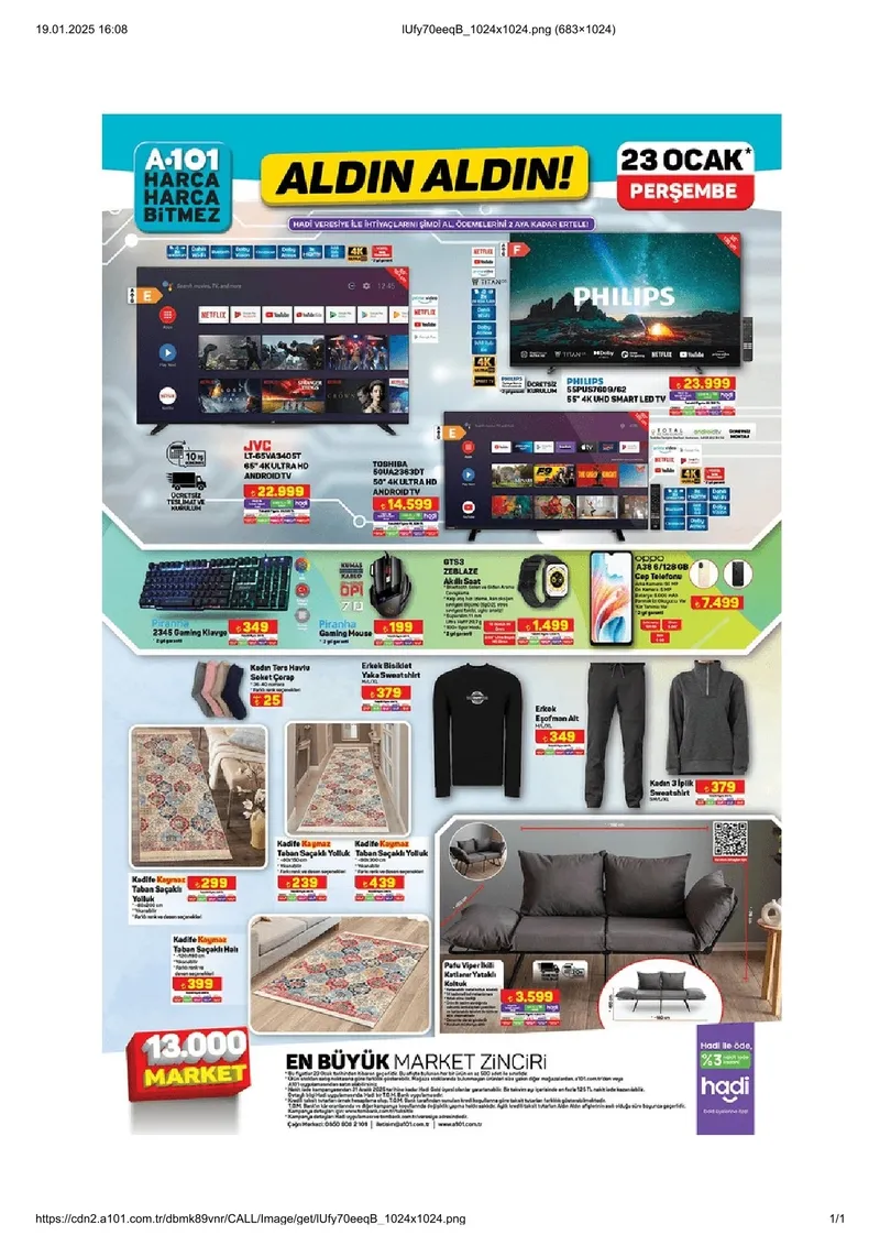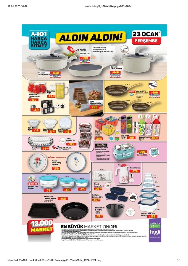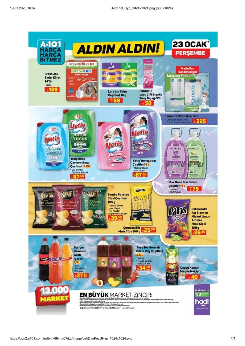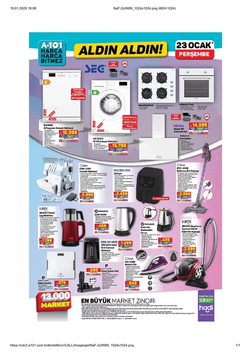 A101, 19 Ocak itibarıyla başlayan indirimlerle dikkat çekiyor. Doğuş Filiz Siyah Çay 1 Kg 175 TL, Pınar Yarım Yağlı Yoğurt 2 Kg 85 TL ve daha pek çok ürün bu hafta indirimli fiyatlarıyla raflarda yerini alacak.