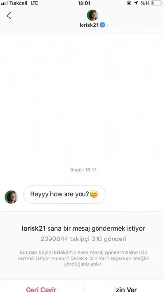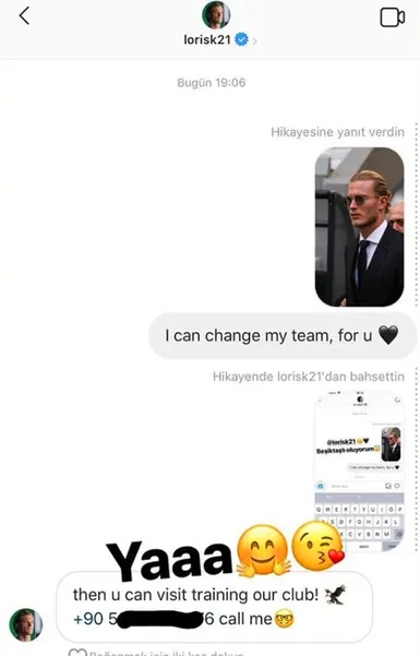 Bir sosyal medya kullanıcısı daha Loris Karius'un kendisine mesaj atıp, telefon numarasını verdiğini iddia etmişti.