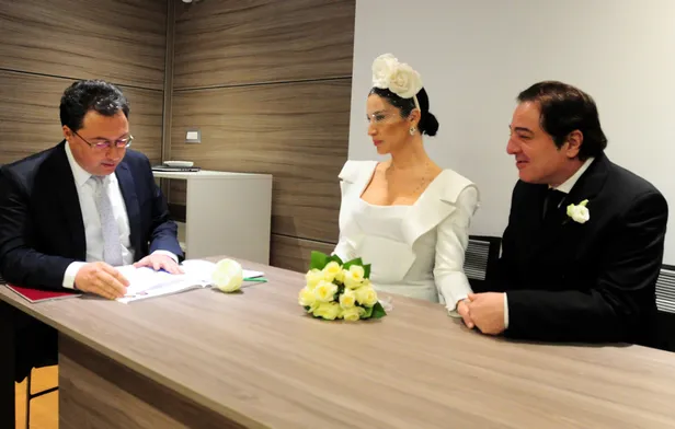 Türkiye'nin Milano Başkonsolosluğu'nda kıyılan nikaha çiftin yakın dostları katıldı.