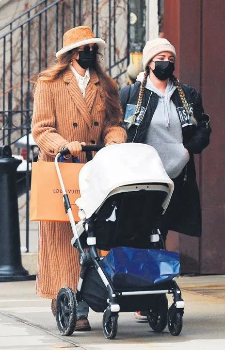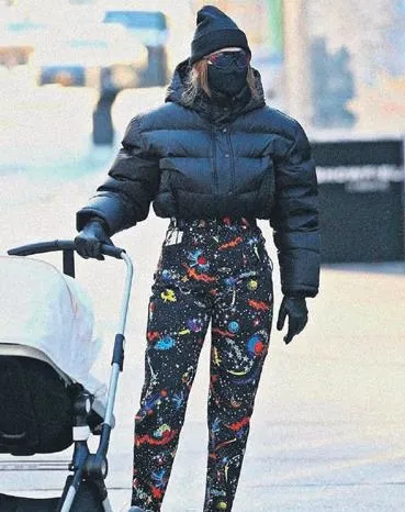 Doğumundan sonra ilk çıkışında siyah tayt ve Dr. Martens botlarıyla eşleştirilmiş büyük boy tüylü kuşaklı bir palto giydi ve aksesuar olarak Brixton şapka, The Row x Oliver Peoples güneş gözlüklerini taktı.