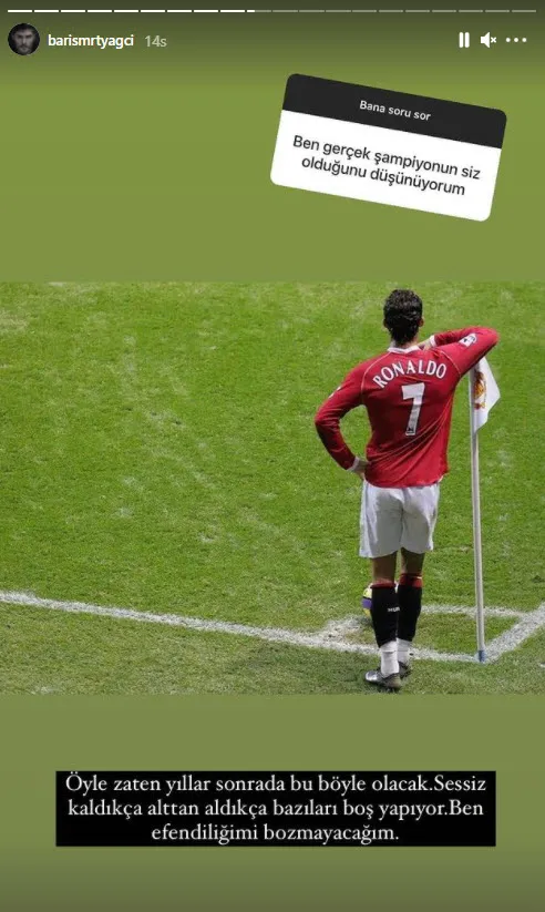 "Öyle zaten, yıllar sonra da bu böyle olacak. Sessiz kaldıkça, alttan aldıkça bazıları boş yapıyor. Ben efendiliğimi bozmayacağım."
