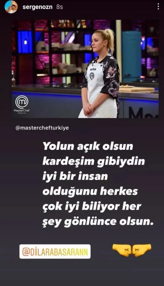MasterChef yarışmacıları, Instagram hesaplarından, Dilara Başaran'a veda eden paylaşımlarda bulundular. Dilara Başaran'a sosyal medya hesabından veda eden isimler arasında, geçtiğimiz haftalarda adı Başaran ile aşk dedikodularına karışan Sergen Özen de vardı.