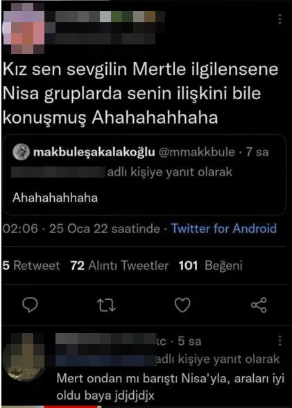 Survivor'ın olay yaratan isimlerinden biri olan Nisa Bölükbaşı'nın, Makbule Şakalakoğlu ve Mert Öcal'ın ilişkisini, sosyal medyadaki ses odalarında anlattığını iddia eden bu tweet kısa sürede olay yarattı.