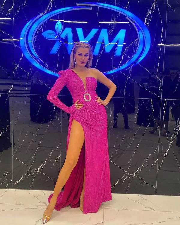 8 Mart Kadınlar Günü'ne özel Bursa'da sahne alan şarkıcı, derin yırtmaçlı pembe bir elbise ile dinleyici karşısına çıktı.