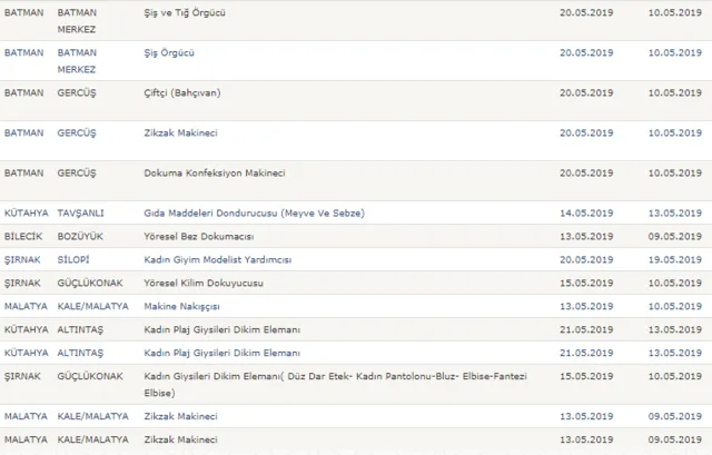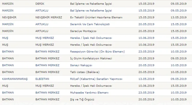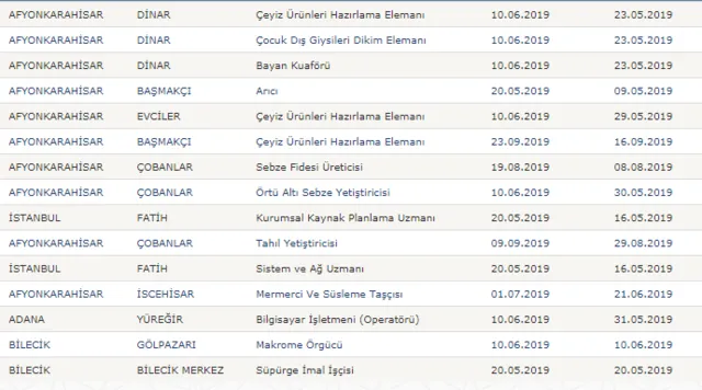 İŞKUR'da yayımlanan ilanlarda işbaşı ile mesleki eğitim kurslarına personel alımı yapılacağı , yapılacak personel alımında adayların önce meslek sahibi sonra iş sahibi yapılacağı bildirildi. Kurs boyunca tüm masrafları ve giderler devlet tarafından karşılanacak adaylar, kurs bitimi sonrası işe yerleştirilecek.