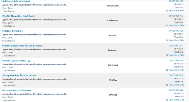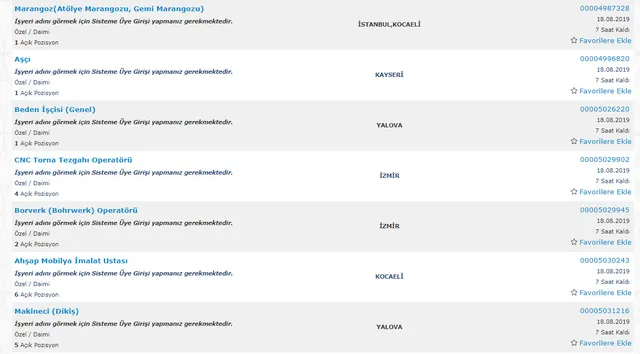 İŞKUR AÇIK İŞ İLANLARI