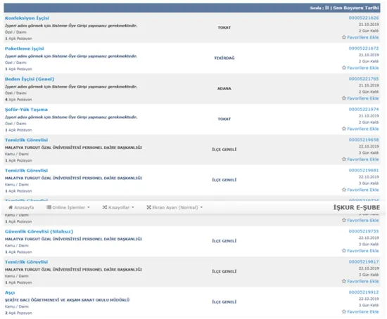 Başvurular İŞKUR üzerinden online olarak yapılmakta olup https://esube.iskur.gov.tr/Istihdam/AcikIsIlanAra.aspx adresinden 24 saat ilan sınırlaması yaparak ilgili ilanlara ulaşmak da mümkündür.
