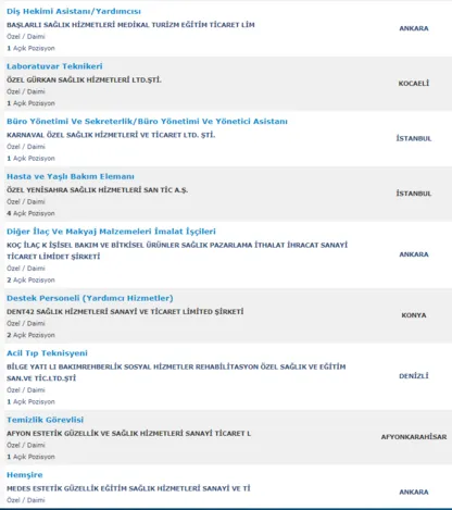 Kariyer sayfası üzerinden yayımlanan ilanlarda özel hastanelere yüzlerce personel alımı yapıldığına yer verildi. Yayımlanan ilanlarda kadrolara şu şekilde yer verildi: