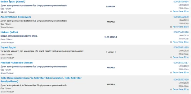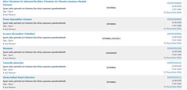 İŞKUR tarafından Ağustos ayının ortalarına geldiğimiz şu zamanlarda hastanelere en az ilkokul mezunu güvenlik temizlik görevlisi, hizmetli, sağlık personeli,ambulans şoförü ve ebe alımı yapılıyor.
