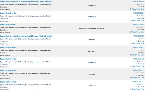 Söz konusu temizlik görevlisi alımı ilanlarına başvuru yapacak adaylar, BURAYA tıkladıktan sonra açılan pencerede kendilerine uygun ilanların özel başvuru şartlarını görebilir ve başvuru işlemlerini gerçekleştirebilirler.